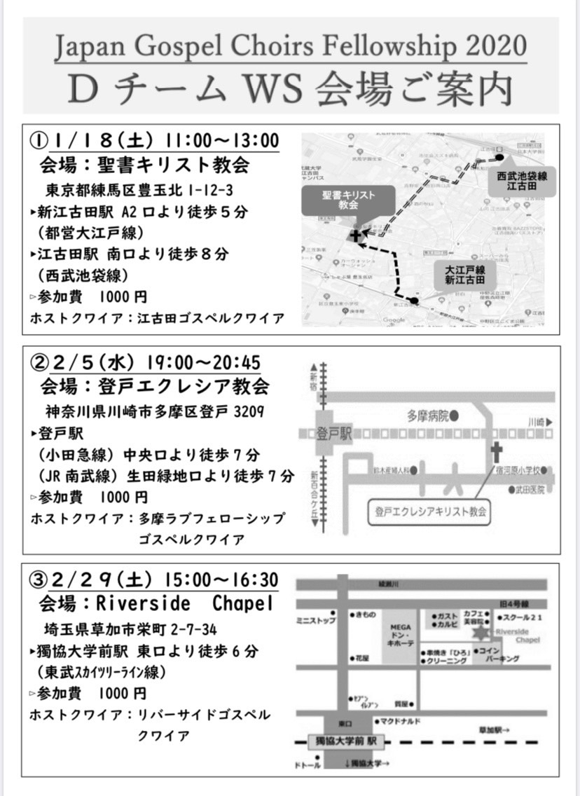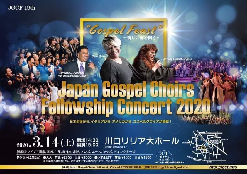 3/15のイベント GOSPEL AID FOR KIDS 2020 TOKYO で歌う下記2曲が追加になりました。