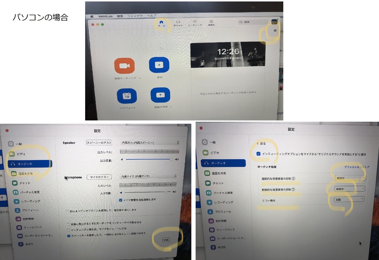 ◆Zoom音声設定の確認(オンラインレッスン前までに、確認してみてください。)