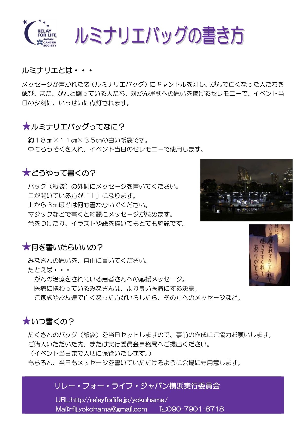 また、過去のイベントで使用した紫の花のコサージュ(メンバーの寄付)を会で保管しており、利用できますことをお知らせしておきます。